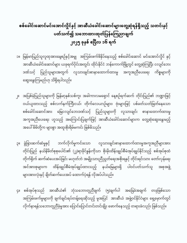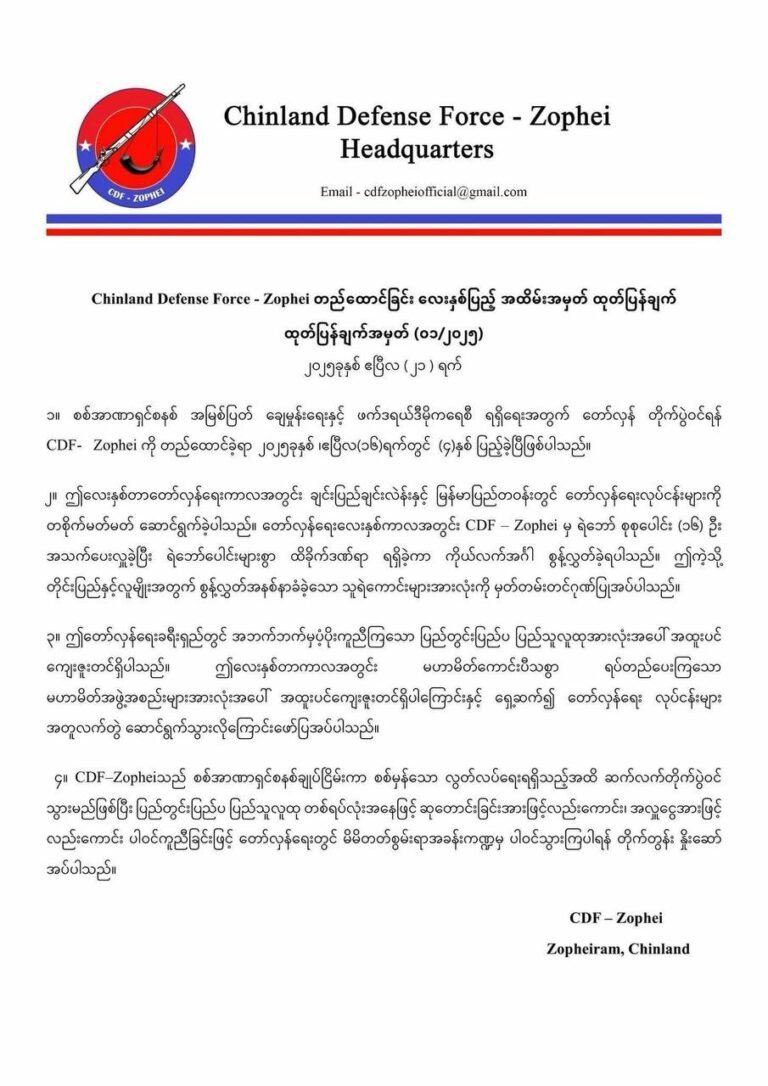 ဖေဖော်ဝါရီလ ၂၀ ရက်။ ချင်းပြည်နယ်ရဲ့ နေရာဒေသတချို့အပါအဝင် နိုင်ငံအတွင်းမှာ ဆူပူအကြမ်းဖက်မှု၊ တရားဥပဒေသကို ဖောက်ပျက်ကျူးလွန်တာတွေနဲ့ နိုင်ငံကို ပြိုကွဲပျက်စီးစေမယ့် အဖျက်လုပ်ရပ်များစွာရှိနေတယ်လို့ ဒီကနေ့ ဖေဖော်ဝါရီလ ၂၀ ရက်နေ့မှာ ကျရောက်တဲ့ (၇၈) နှစ်မြောက် ချင်းအမျိုးသားနေ့မှာ အာဏာသိမ်းစစ်ခေါင်းဆောင် ဗိုလ်ချုပ်မှူးကြီးမင်းအောင်လှိုင်က သဝဏ်လွှာပေးပို့ခဲ့ပါတယ်။ ပြည်ထောင်စုဖွား တိုင်းရင်းသားညီအစ်ကို မောင်နှမအကြား နှစ်ပေါင်းထောင်ချီ၍ ဖြစ်တည်လာတဲ့ သံယောဇဉ်နဲ့ ချစ်ကြည်ရင်းနှီးမှုတွေကို ပြည်တွင်း၊ ပြည်ပ အဖျက်အင်အားစုတွေက အချင်းချင်းမုန်းတီးစေရန် သွေးခွဲရန်တိုက်ပေး ကျဉ်းမြောင်းတဲ့ လူမျိုးရေးဝါဒ သွက်သွင်းနေမှုတို့ဖြင့် ဖြိုခွဲဖျက်ဆီးနေတာကိုလည်း သတိပြုကာကွယ်ဖို့ တိုက်တွန်းတယ်လို့ ချင်းအမျိုးသားနေ့သဝဏ်လွှာမှာဖော်ပြထားတာတွေ့ရပါတယ်။ လက်ရှိကြုံတွေ့နေရတဲ့ အကြမ်းဖက် လုပ်ရပ်တွေဟာ ၂၀၂၀ ပြည့်နှစ် အထွေထွေရွေးကောက်ပွဲကနေ ဖြစ်ပေါ်လာတဲ့ မဲမသမာမှု ရလဒ်ပယ်ဖျက်ခံရတဲ့အပေါ် အမှန်ကို အမှန်တိုင်း သုံးသပ်ရှုမြင်မှု မရှိဘဲ…