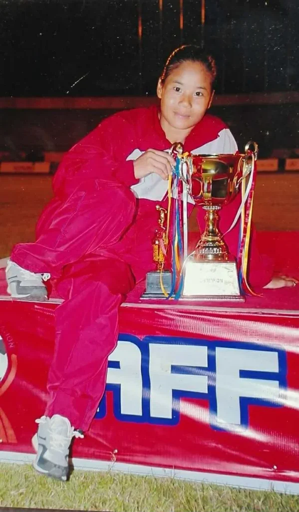 မိုင်နီလာထွေး။ ကလေးဝမှာတုန်းက ကျောင်းမှာအားကစားလုပ်ကြတော့- အားကစားမှူးက အားကစားထူးချွန်နိုင်တယ်ဆိုပြီးမှတ်ချက်ပေးတယ်။ ကျမက ဘောလုံးအားကစားကို အရင်ရွေးချယ်ခဲ့တာတော့ မဟုတ်ဘူး။ အရင်ကတော့ ဘောလီဘောနဲ့ ကြက်တောင်တို့ မာရသွန်တွေကိုပဲကစားခဲ့တယ်။ ဘောလုံးက ကိုယ်က အရပ်ပုတာလည်းပါတော့ မဖြစ်လောက်ဘူးထင်တာပေါ့။ အရပ်က ၅ပေ၃လက်မပဲဆိုတော့လေ။ ဘောလုံးကိုတော့ မရွေးခဲ့ဘူး။ ဘောလုံးကိုလည်း ကြောက်တယ်။ ဘုရားကျောင်းပွဲတွေလောက်ပဲကြည့်ခဲ့တာ။ ရှစ်တန်းနှစ်လောက်မှာ အားကစားမှူးက ကန်ပါဆိုပြီးအားပေးပြီး၊ စာရင်းထဲထည့်ပေးလိုက်တာ။ ဘောလုံးကွင်းမှာလည်း မကန်ရဲပဲ ကွင်းဘေးမှာထိုင်နေတုန်း သူငယ်ချင်းတွေ ထရိန်နင်ဆင်းနေတဲ့ဘောလုံးက ကျမအနားကိုရောက်လာတယ်။ ကန်ရဲမကန်ရဲနဲ့ လှမ်းကန်ပေးလိုက်တာ..။ ကန်လို့ကောင်းသားပဲဆိုပြီး၊ ဘောလုံးစကစားဖြစ်တယ်လို့ပြောရမယ်။