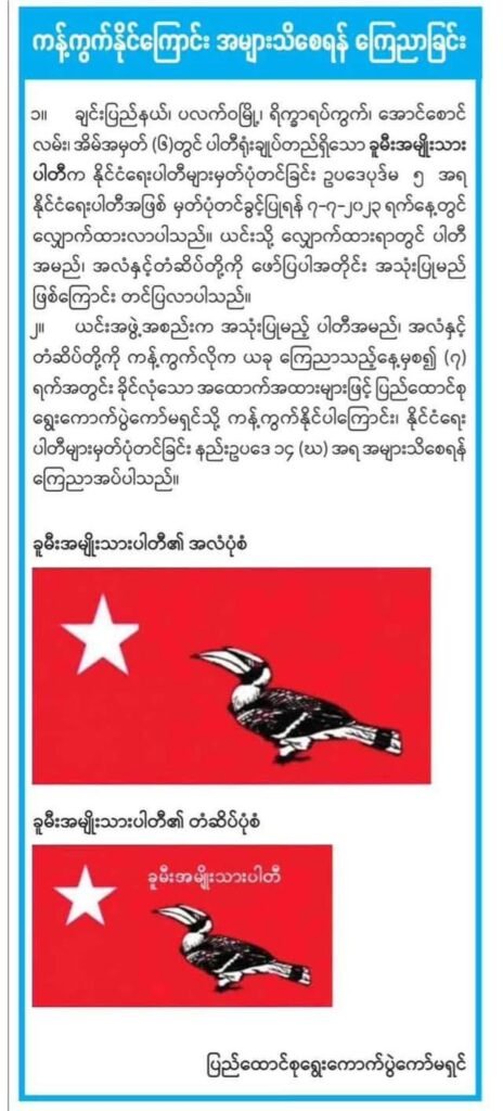 နိုင်ငံရေးပါတီတွေ မဲဆွယ်စည်းရုံးခွင့်ကာလ ကို အောက်တိုဘာ ၂၈ ကနေ စတင်နိုင်ပြီး ဒီဇင်ဘာ ၂၆ ရက်အထိ (ရက်ပေါင်း ၆၀ ) ခွင့်ပြုတယ်လို့အာဏာသိမ်းစစ် ကော်မရှင်လက်အောက်ခံပြည်ထောင်စုရွေးကောက်ပွဲကော်မရှင်က အောက်တိုဘာလ ၁၅ ရက်စွဲနဲ့ထုတ်ပြန်လိုက်ပါတယ်။