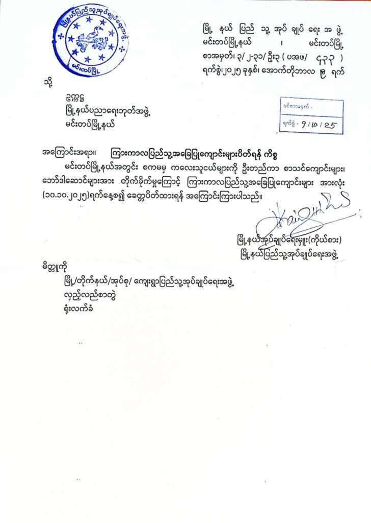 ချင်းပြည်နယ်၊ မင်းတပ်မြို့နယ်အတွင်း စစ်ကော်မရှင်က ကလေးသူငယ်တွေကို ဦးတည်ပြီး စာသင်ကျောင်းတွေ၊ ဘော်ဒါဆောင်တွေကို တိုက်မှုတွေကြောင့် ကြားကာလ ပြည်သူ့အခြေပြု ကျောင်းတွေ အားလုံးကို အောက်တိုဘာလ ၁၀ ရက်နေ့ကစလို့ ခေတ္တပိတ်ထားဖို့ မြို့နယ်ပြည်သူ့အုပ်ချုပ်ရေးအဖွဲ့က အကြောင်းကြားထားတယ်လို့ သိရပါတယ်။