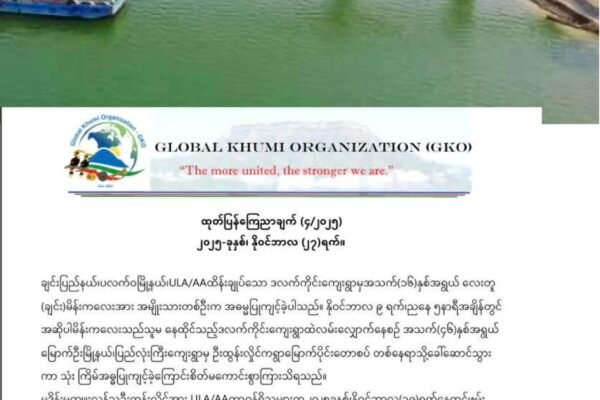 နိုဝင်ဘာလ ၂၈ ရက်။ ချင်းပြည်နယ်၊ ပလက်ဝမြို့နယ် ၊ ဒလက်ကိုင်းကျေးရွာမှာ အသက်မပြည့်သေးတဲ့ လေးတူ (ချင်း) မိန်းကလေးငယ်ကို အဓမ္မပြုကျင့်ခဲ့သူကို ထိရောက်စွာ အရေးယူပေးဖို့ ပလက်ဝဒေသခံခူမီးချင်းမျိုးနွယ်စုအဖွဲ့အစည်းဖြစ်တဲ့ Global Khumi Organization (GKO) က နိုဝင်ဘာလ ၂၇ ရက်နေ့မှာ ထုတ်ပြန်ပါတယ်။ ပြီးခဲ့တဲ့ နိုဝင်ဘာလ ၉ ရက်နေ့ ၊ ညနေ ၅ နာရီချိန်လောက်မှာ ပလက်ဝမြို့နယ် ၊ ဒလက်ကိုင်းကျေးရွာက ဒေသခံ လေးတူ (ချင်း) မိန်းကလေးငယ်ကို ရခိုင်ပြည်နယ်၊ မြောက်ဦးမြို့နယ် ၊ ပြည်လုံးကြီးကျေးရွာနေ ဦးထွန်းလှိုင် အသက် ၄၆ နှစ်အရွယ်က ဒလက်ကိုင်းရွာမြောက်ပိုင်းတောစပ်တစ်နေရာမှာ အဆိုပါ ချင်းအမျိုးသမီးငယ်ကို ခေါ်ဆောင်ပြီး ၃ ကြိမ် အဓ္ဓမ္မပြုကျင့်ခဲ့တဲ့ပေါ် ULA…
