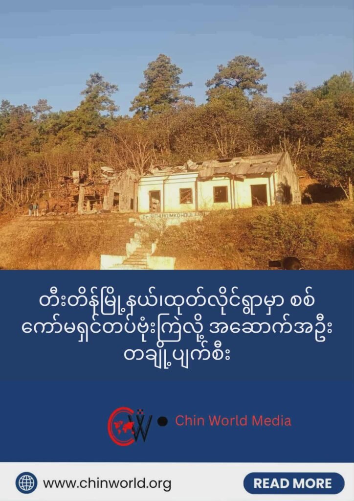 တီးတိန်မြို့နယ်၊ထုတ်လိုင်ရွာမှာ စစ်ကော်မရှင်တပ်မှ ဗုံးကြဲ တာကြောင့် အဆောက်အဦး တချို့ ပျက်စီး
