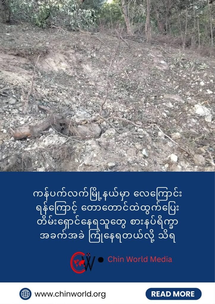 ချင်းပြည်နယ် ၊ ကန်ပက်လက်မြို့နယ်အတွင်းက ကျေးရွာတစ်ရွာဟာ ဒီဇင်ဘာလအတွင်းကို လေကြောင်းကနေ ၂ ကြိမ်တိုက်ခိုက်ခံရလို့ ကျေးရွာနေအရပ်သားတွေဟာ ဘေးလွတ်ရာတောတောင်တွေထဲ အရေးပေါ်တိမ်းရှောင်နေရလို့ စားနပ်ရိက္ခာအခက်အခဲတွေလည်း ကြုံနေကြရတယ်လို့ ကန်ပက်လက်မြို့နယ် လူသားစာနာဘေးစီမံဌာနရဲ့ ဒီဇင်ဘာလ ၁၁ ရက်နေ့ထုတ်ပြန်ချက်အရ သိရပါတယ်။