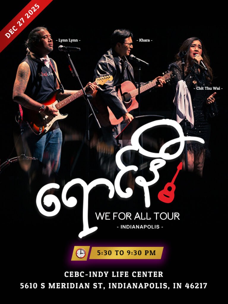 အမေရိကန်ပြည်ထောင်စု၊ အင်ဒီယားနားပြည်နယ်ရှိ၊ အင်ဒီယားနားပိုလစ်စ်မြို့မှာ လာမယ့် ဒီဇင်ဘာလ ၂၇ ရက်၊ ဒေသစံတော်ချိန် ၅ နာရီခွဲကနေ ၇ နာရီခွဲအထိ အဆိုတော်လင်းလင်း၊ ချစ်သုဝေ၊ သရုပ်ဆောင် ခါရာနဲ့ ချင်းအဆိုတော်များ ပါဝင်ဖျော်ဖြေသွားမယ့် ရောင်နီဂီတပွဲ ကျင်းပပြုလုပ်မှာ ဖြစ်ပါတယ်။