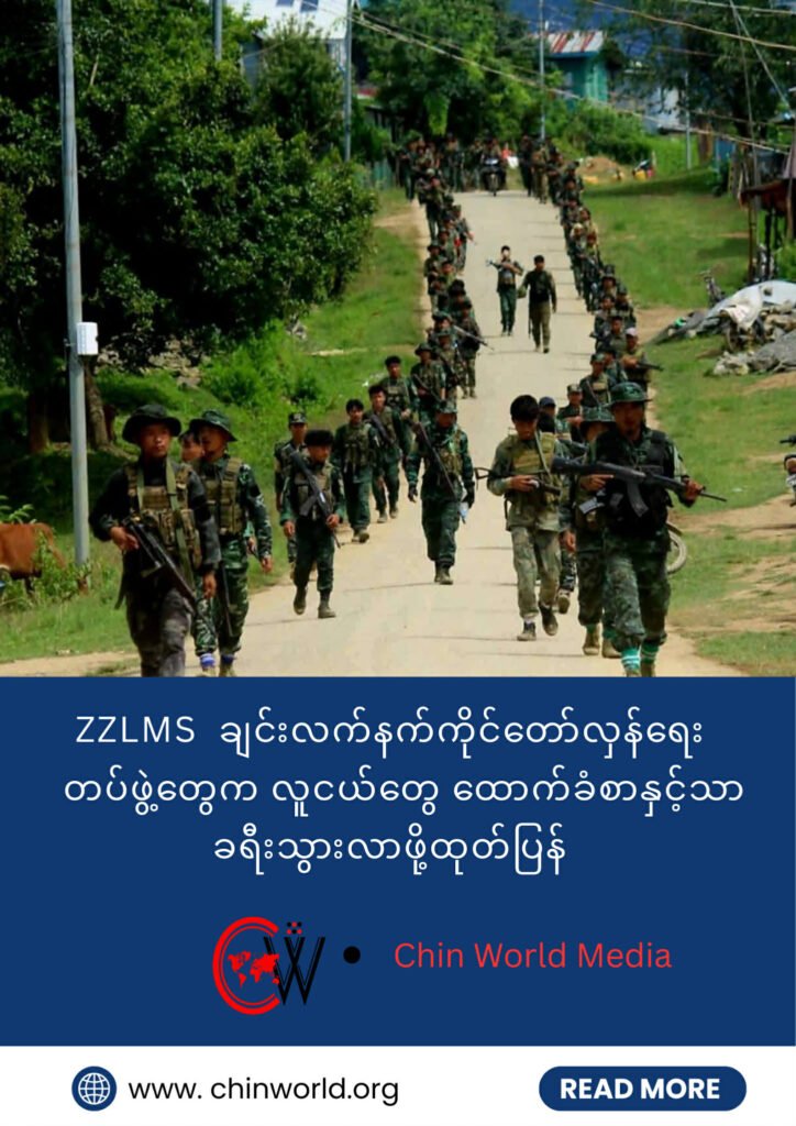 ဒါ့ပြင် စစ်အာဏာရှင်စနစ် အမြစ်ပြတ်ချုပ်ငြိမ်းရေး ကိုယ်ပိုင်ပြဌာန်းခွင့် အပြည့်အဝရရှိတဲ့ ချင်းပြည်တည်ဆောက်နိုင်ရေးအတွက် ချင်းပြည်သူတွေအနေဖြင့် ချင်းလဲန်းကာကွယ်ရေးတပ်ဖွဲ့တွေနှင့်အတူ စည်းလုံးညီညွတ်စွာ ပူးပေါင်းပါဝင် ကြိုးစားဆောင်ရွက်ကြဖို့ကိုလည်း ZZLMS က တိုက်တွန်းတယ်လို့ ဆိုပါတယ်။