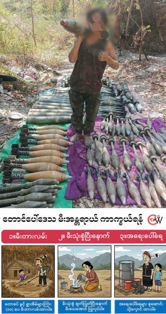 CNO / CNDF ပြောရေးဆိုခွင့်ရှိသူ ဆလိုင်းတင်မီက “ ထင်းရှုးစခန်းဘက်ပေါ့ သိုင်ငင်းကနေ တက်လာတဲ့ စစ်ကြောင်းမှာ သူတို့ဘက်ကနေ မနေ့က ကျနော်တို့တော်လှန်ရေးတပ်တွေ ခံစစ်ထားတဲ့နေရာကုန်းကို သူတို့ဘက်ကသိမ်းတယ်ပေါ့နော် ဒီနေ့မနက် ၁ နာရီလောက်မှာ ကျနော်တို့ ထိုးစစ်ပြန်ဆင်ပြီးမှ လက်နက်ငယ် ၁၁ လက်လောက် ဒီကနေ့ မနက် သိမ်းတဲ့ဟာ ရှိပါတယ်။ နောက်ပြီး လက်နက်ကြီးကျည်တွေကိုတော့ ဝေဘူလဘက်ကနေ စစ်ကြောင်းသူတို့လာတဲ့ခါတုန်းက မဏိပူရ်ရမြစ်ရောက်တဲ့ချိန် ကျနော်တို့နဲ့ ၈ ရက်လောက်ပစ်ခတ်မှုရှိတော့ သူတို့မသယ်နိုင်တော့ ဝှတ်ထားတဲ့ဟာတွေဖြစ်တယ် ဟိုတနေ့က စကစ ဘက်ကနေ ကျနော်တို့ဖမ်းမိတဲ့ဟာရှိတယ် အဲဒီနောက် နယ်မြေရှင်းလင်းရေးတွေလုပ်ပြီးမှ သူတို့ဖွတ်ထားတဲ့ဟာတွေကို ကျနော်တို့ပြန်ယူတဲ့သဘောဖြစ်ပါတယ် မဏိပူရ်ရမြစ်တဘက်ခြမ်းမှာပေါ့နော်” လို့ပြောပါတယ်။