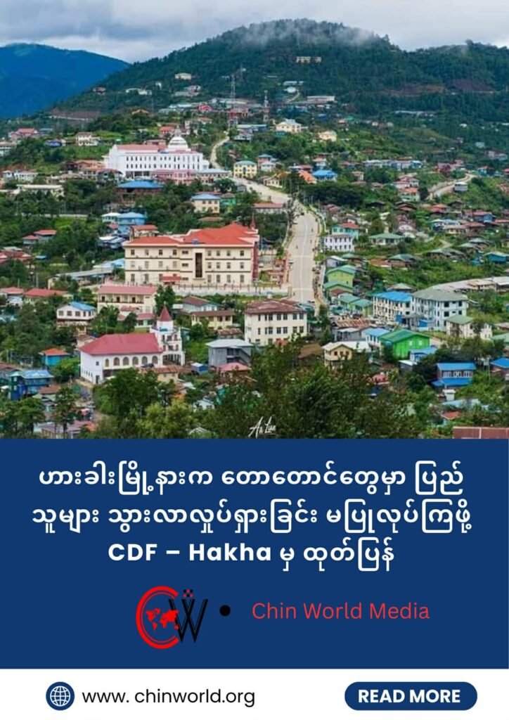 အသိပေးထုတ်ပြန်ချက်နဲ့ ပက်သက်ပြီး အများပြည်သူအနေဖြင့် လေးနက်စွာ လိုက်နားပေါင်း ဆောင်ရွက်ကြဖို့ကိုလည်း မေတ္တာရပ်ခံတယ်လို့ CDF – Hakha က ထုတ်ပြန်ပါတယ်။