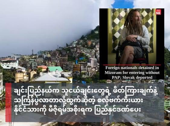 အိန္ဒိယနိုင်ငံ၊ မီဇိုရမ်ပြည်နယ်အတွင်းကို နယ်မြေကန့်သတ်ချက်စောင့်ကြည့်ခွင့်ပြုမိန့် (PAP) မပါဘဲ ဝင်ရောက်ခဲ့တဲ့ စလိုဗက်ကီးယားနိုင်ငံသားဟာ မြန်မာနိုင်ငံ၊ ချင်းပြည်နယ်က သူငယ်ချင်းတွေရဲ့ ဖိတ်ကြားချက်နဲ့ သင်္ကြန်ပွဲတော်ဆင်နွှဲဖို့ လာရောက်တာဖြစ်တယ်လို့ ထွက်ဆိုခဲ့ပေမယ့် အာဏာပိုင်တွေက သူ့ကို ပြည်နှင်ဒဏ်ပေးလိုက်ပါတယ်။