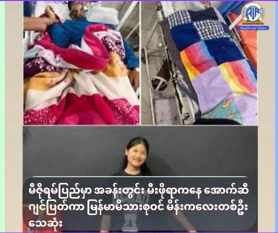 အိန္ဒိယနိုင်ငံ၊ မီဇိုရမ်ပြည်နယ်၊ Kolasib ခရိုင်ရှိ Lungdai မြို့မှာ မြန်မာပြည်ဘက်ကနေ လာရောက်ပြီး အိမ်ငှားနေထိုင်နေတဲ့ မိသားစုတစ်စုဟာ ဧပြီလ ၁၃ ရက်နေ့မှာ ပုံမှန်အတိုင်း ဆိုင်မဖွင့်ခဲ့တဲ့အတွက် ဒေသခံတွေက သွားရောက်ကြည့်ရှုရာမှာ အခန်းတွင်း မီးဖိုရာကနေ အသက်ရှူကျပ်ပြီး အသက် ၁၄ နှစ်အရွယ် မိန်းကလေးတစ်ဦး သေဆုံးကာ၊ မိခင်နဲ့ မောင်ဖြစ်သူတို့ သတိလစ်နေတာကို တွေ့ရှိခဲ့ရတယ်လို့ ဒေသတွင်းသတင်းတွေအရ သိရပါတယ်။