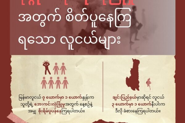အောက်တိုဘာလ ၁၀ ရက်။ မြန်မာနိုင်ငံရှိ လူငယ် (၇) ယောက်မှာ (၁) ယောက်နှုန်းက သူတို့လုံခြုံမှုအတွက် နေ့စဉ်နဲ့ အမျှ စိုးရိမ်ပူပန်နေကြရပြီး ချင်းပြည်နယ်မှာဆိုရင် လူငယ် ၃ ယောက်မှာ ၁ ယောက် နီးပါးကဒီလိုခံစား နေရ ကြောင်း ၊လုံခြုံမှုအတွက် နေ့စဉ်နဲ့ အမျှ စိုးရိမ်ပူပန်မှုဟာ ချင်းပြည်နယ်နဲ့ ကယားပြည်နယ် ဘက်က လူငယ်တွေမှာ ပိုအဖြစ်များတာတွေ့ရတယ်လို့ ကုလသမဂ္ဂဖွံ့ဖြိုးမှုအစီအစဉ် ( UNDP Myanmar) ရဲ့ အောက်တိုဘာလ ၁၀ ရက်နေ့ ထုတ်ပြန်ချက်အရ သိရပါတယ်။ မြန်မာနိုင်ငံရှိ လူငယ်များစွာဟာ သူတို့ရဲ့ပုဂ္ဂိုလ်ဆိုင်ရာ ဘေးကင်းလုံခြုံမှုအတွက် နေ့စဉ်နဲ့အမျှ ရင်ဆိုင်နေရတဲ့ အကျပ်အတည်းဖြစ်လာတယ်လို့ UNDP Myanmar ရဲ့ အစီရင်ခံစာမှာ ဖော်ပြပါတယ်။ မြန်မာနိုင်ငံအတွင်းရှိ လူငယ်…